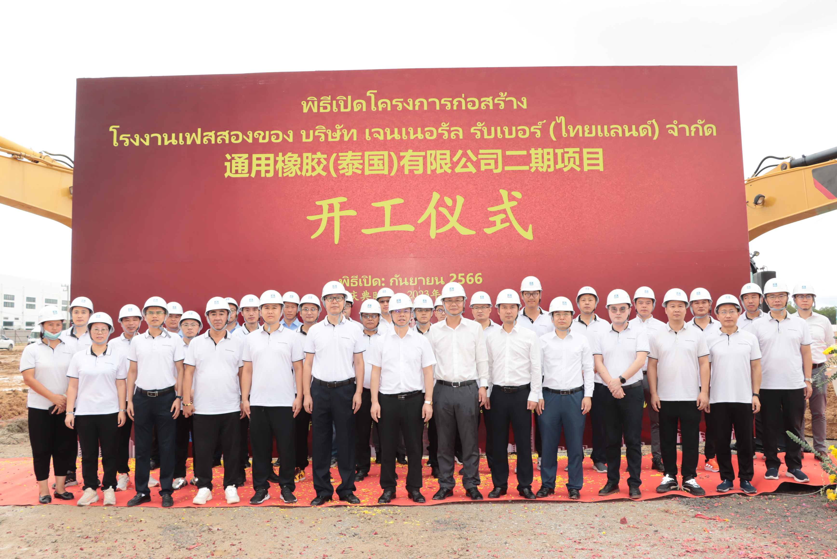 9月27日,通用股份泰國基地二期項目開工儀式在泰中羅勇工業園舉行。通用股份泰國公司副總經理李凱、研究院院長丁振洪、中國建筑(泰國)有