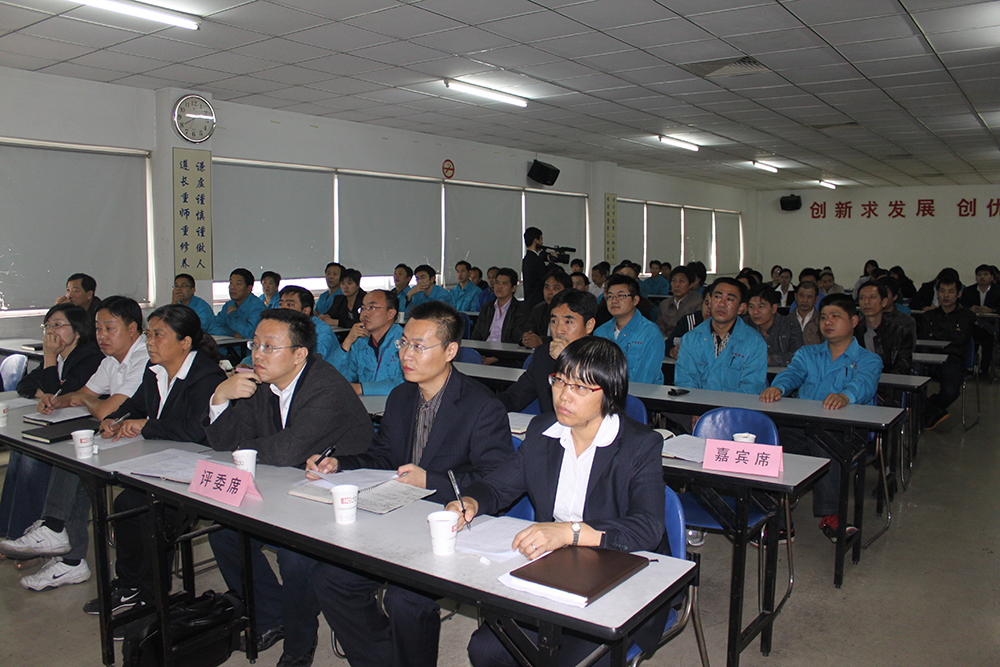 會(huì)議共分為現(xiàn)場(chǎng)案例展示、改善效果分析、評(píng)委現(xiàn)場(chǎng)提問等三大環(huán)節(jié),選手們將車間改善事例用PPT的形式展現(xiàn)出來,圖文并茂的為現(xiàn)場(chǎng)觀眾進(jìn)行講解,并對(duì)車間改善效果進(jìn)行詳細(xì)的闡述,與在場(chǎng)的班組代表們形成互動(dòng)式交流。隨后評(píng)委對(duì)于改善效果進(jìn)行現(xiàn)場(chǎng)評(píng)分,經(jīng)過一番激烈的角逐,來自全鋼C區(qū)的王明波以《改進(jìn)升降平移式硫化機(jī)開模過程》的案例獲得了此次例會(huì)的特等獎(jiǎng),并以總分37.2的高分位列第一。來自小胎廠的黃海峰以及全鋼B區(qū)車間的朱恒海分獲第二、第三名。通用公司副總經(jīng)理顧亞紅對(duì)于此次例會(huì)給予了高度的肯定,并對(duì)改善案例中涌現(xiàn)的優(yōu)秀員工給予了一定的獎(jiǎng)勵(lì),感謝他們?yōu)檐囬g生產(chǎn)所作出的貢獻(xiàn),并希望各廠區(qū)在今后的工作中能保持這種勇于創(chuàng)新、勇于改進(jìn)的意識(shí),認(rèn)真的完成每一項(xiàng)生產(chǎn)任務(wù),為通用的騰飛再點(diǎn)輝煌。