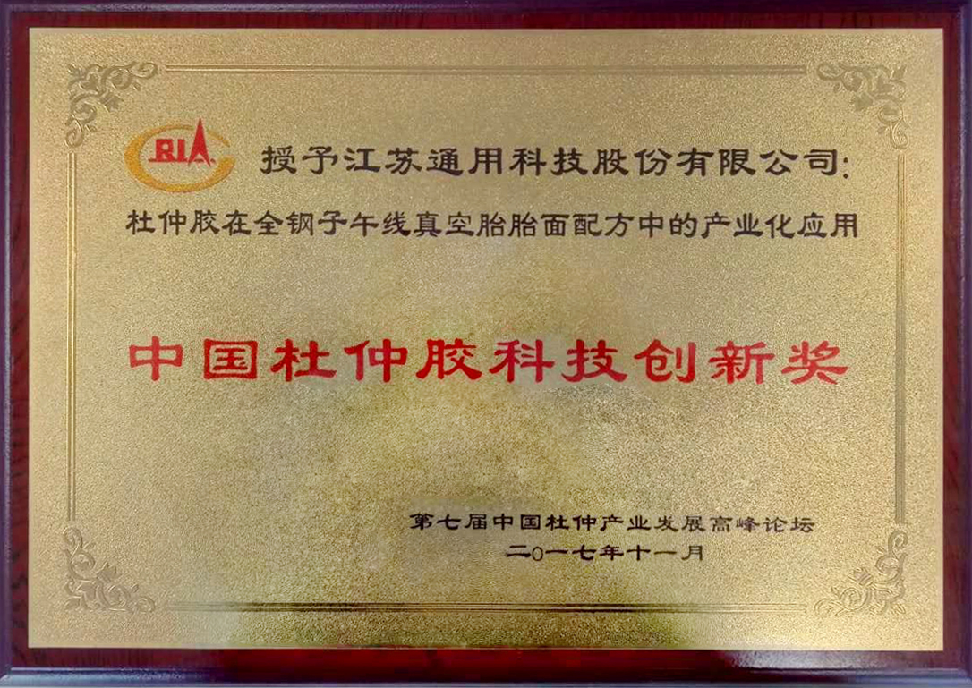 經過七年潛心研制,通用股份逐步突破技術瓶頸,成功將杜仲膠材料與輪胎完美融合,采用杜仲膠配方技術的輪胎,表現出優秀的高速耐久性能,輪胎品質顯著提升。2017年榮獲“中國杜仲膠科技創新獎”。2018年,通用股份率先實現了合成型杜仲橡膠(TPI)在全鋼子午胎中連續化生產,大幅提升產品性能,通過科技成果鑒定,達到國際先進水平。