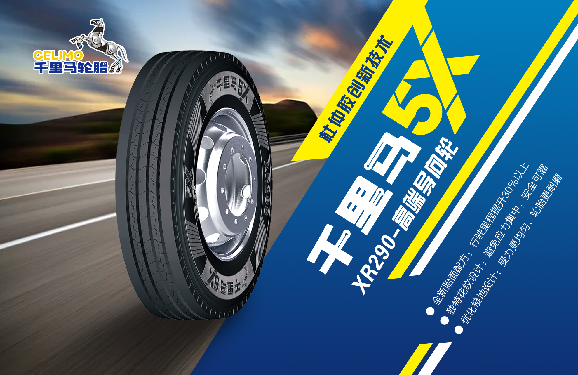 近年來,通用股份積極把握卡車司機普遍對輪胎“更長里程”的需求,以自主創新為引擎,將中長途無內胎產品定位再度升級。4月30日,通用股份舉行線上產品發布會,重磅推出杜仲輪胎——千里馬5X XR290,重新定義高耐磨輪胎,引領輪胎行業進入新耐磨時代。