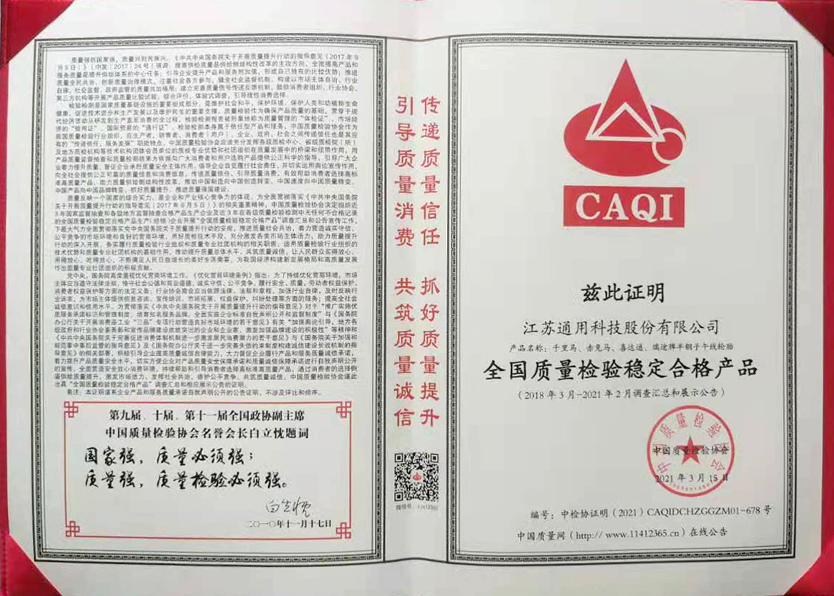 近日,在由中國質量檢驗協(xié)會主辦的2021年“3·15”國際消費者權益日“產(chǎn)品和服務質量誠信承諾”主題活動中,通用股份憑借優(yōu)質的產(chǎn)品性能、穩(wěn)定的產(chǎn)品質量以及完善的售后服務,榮獲“全國產(chǎn)品和服務質量誠信示范企業(yè)”、“全國質量檢驗穩(wěn)定合格產(chǎn)品”兩項榮譽,體現(xiàn)了中國質量檢驗協(xié)會對通用股份多年來專注產(chǎn)品品質、誠信經(jīng)營的肯定。