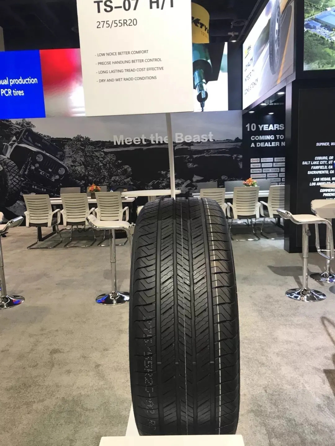 通用股份TBBTIRES品牌登陸美國市場以來,銷量不俗,深受國外市場青睞,參展的觀眾也經常針對性的參觀并咨詢相關問題。本次SEMA展會上,TS-07H/T、TS-37 A/T等一系列性能優異的輪胎產品受到了外國客戶們的一致好評。