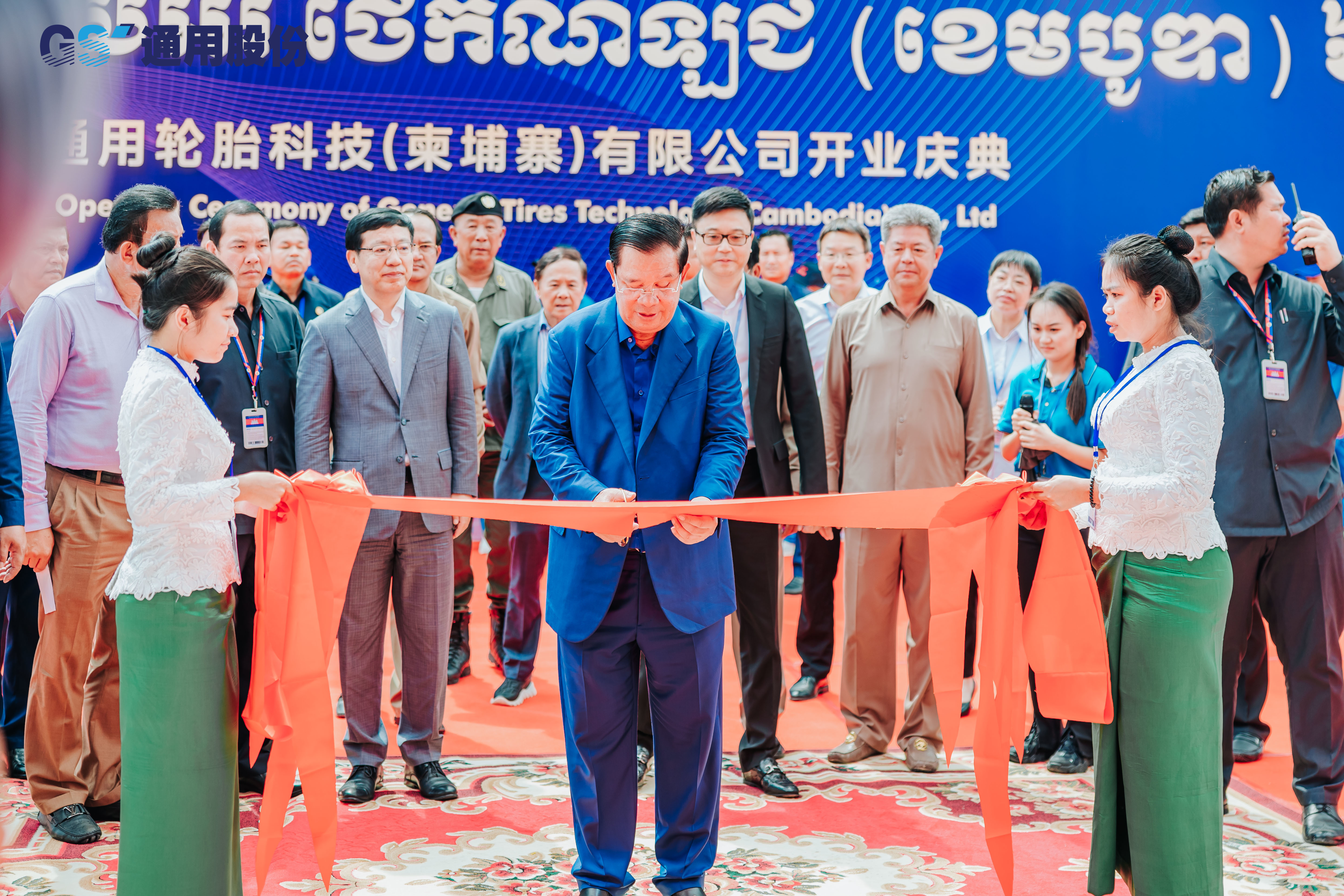 2023年5月22日,“奮進新高地 啟航新征程”——通用輪胎科技(柬埔寨)有限公司開業慶典在柬埔寨西港經濟特區隆重舉行。柬埔寨首相洪森親臨現場,中國駐柬埔寨大使王文天、中國駐柬埔寨大使館參贊鄔國權等中柬兩國政府領導及通用股份董事長顧萃、柬埔寨基地全體員工共同參加了活動,見證通用股份國際化戰略布局中的又一重要里程碑。
