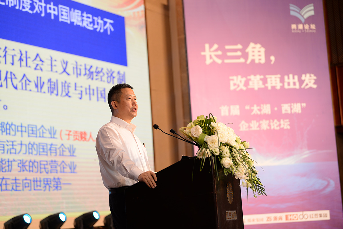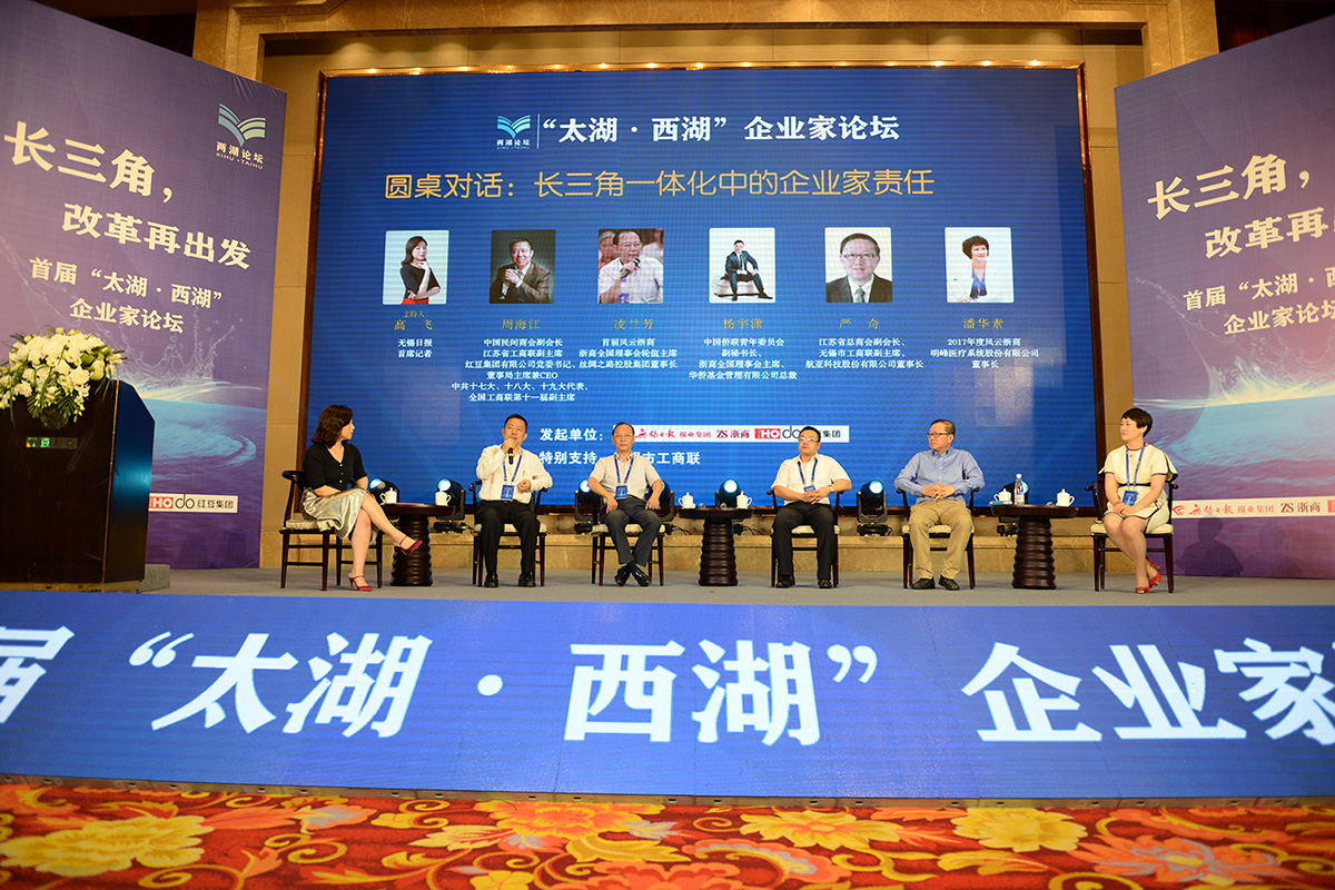 論壇上,洪銀興作了題為《積極應對貿(mào)易戰(zhàn)》的主旨演講。“太湖•西湖”企業(yè)家聯(lián)盟宣布成立,“太湖•西湖”企業(yè)家聯(lián)盟宣言發(fā)布。紅豆集團董事局主席周海江接受“太湖•西湖”企業(yè)家聯(lián)盟輪值主席授牌,無錫日報報業(yè)集團黨委書記楊建代表聯(lián)盟秘書處接受授牌。江浙兩地企業(yè)家圍繞“長三角一體化發(fā)展中的企業(yè)家責任”展開圓桌對話。