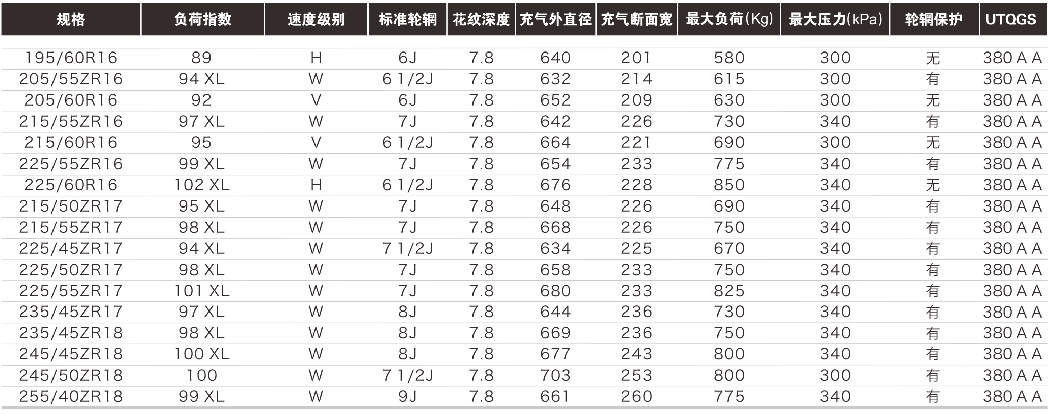胎面非對稱的花紋設計,既確保了優異的彎道抓著力又分散了轉向時產生的接地壓力。