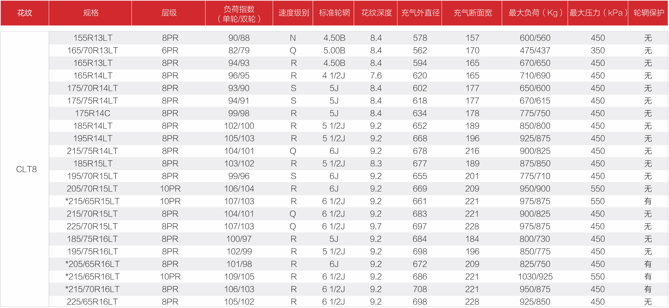互聯型加強花紋設計,增大接地面積,提供更優異的抓地力。胎肩封閉連貫設計提高耐磨及耐撕裂性能。