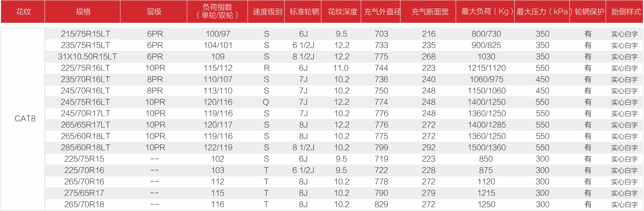 GUANYU A/T CAT8擁有曲折花紋溝設計,適應各種惡劣路況。連貫的橫向傾斜溝槽在濕地路面有效排除積水,提供持續穩定的抓地能力。全新耐磨配方,適合比較苛刻的路面,保證了輪胎壽命。